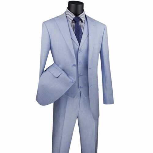 VINCI Men's Light Blue Textured Weave 2 Button 3 Piece Modern Fit Suit NEW