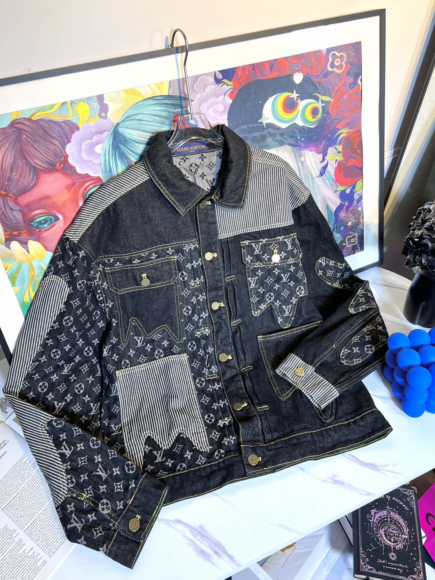 This tooling jacket is designed in wavy detail and decorated with a collision denim veneer with a fu