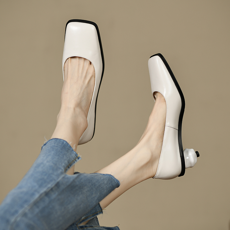 sheepskin! sheepskin! sheepskin! 2022 new leather square toe shoes special-shaped heel comfortable women's shoes 8473
