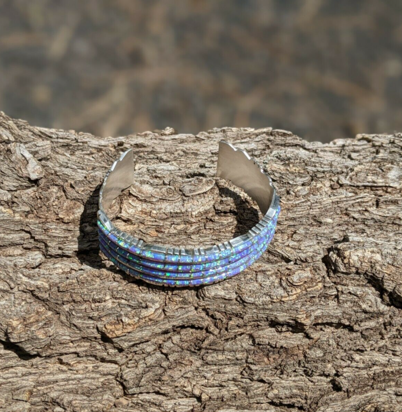Zuni Cuff Bracelet Opal Inlay Sz 6.5 Inlay Sterling Signed Native Am Jewelry