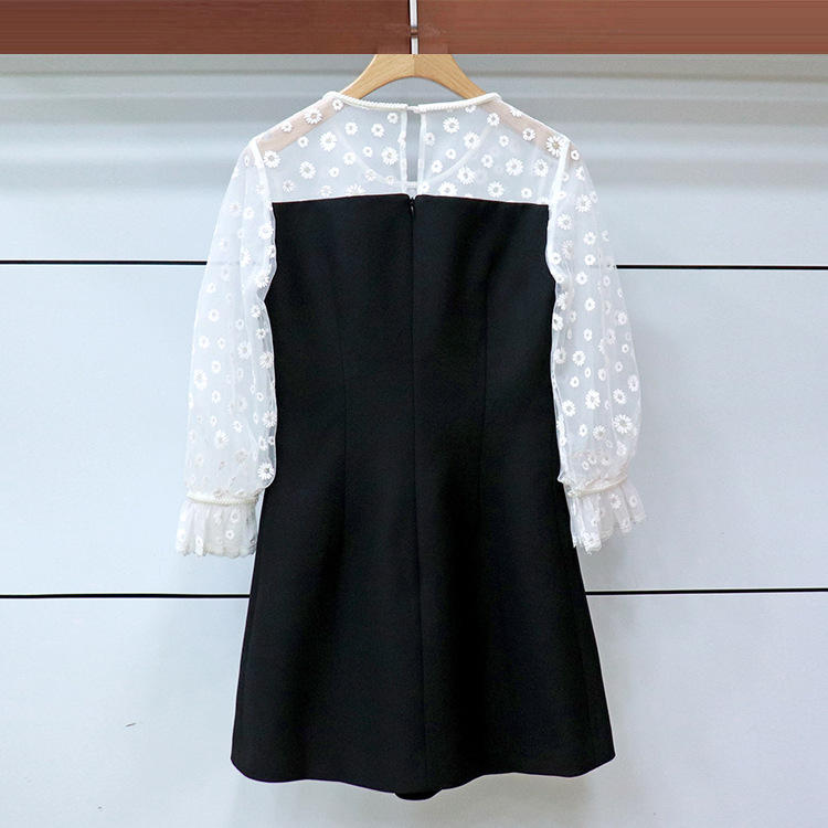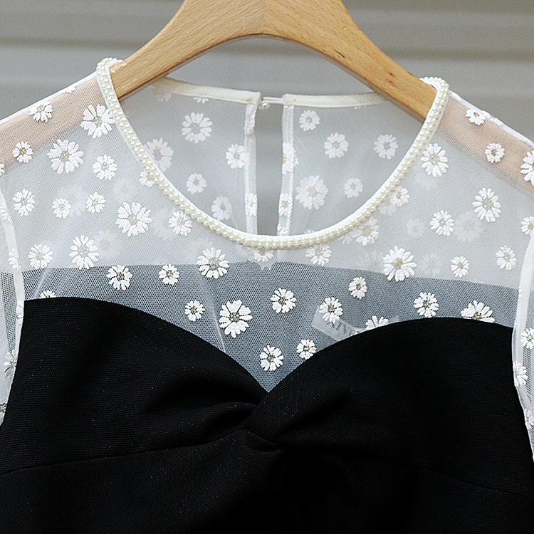 A new women's dress with hand-made beaded round collar daisy embroidery broken flower splicing breast-wiped high-waist dress.