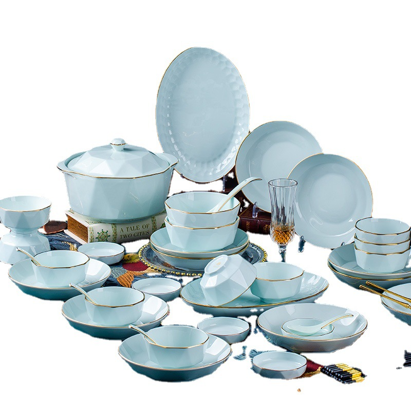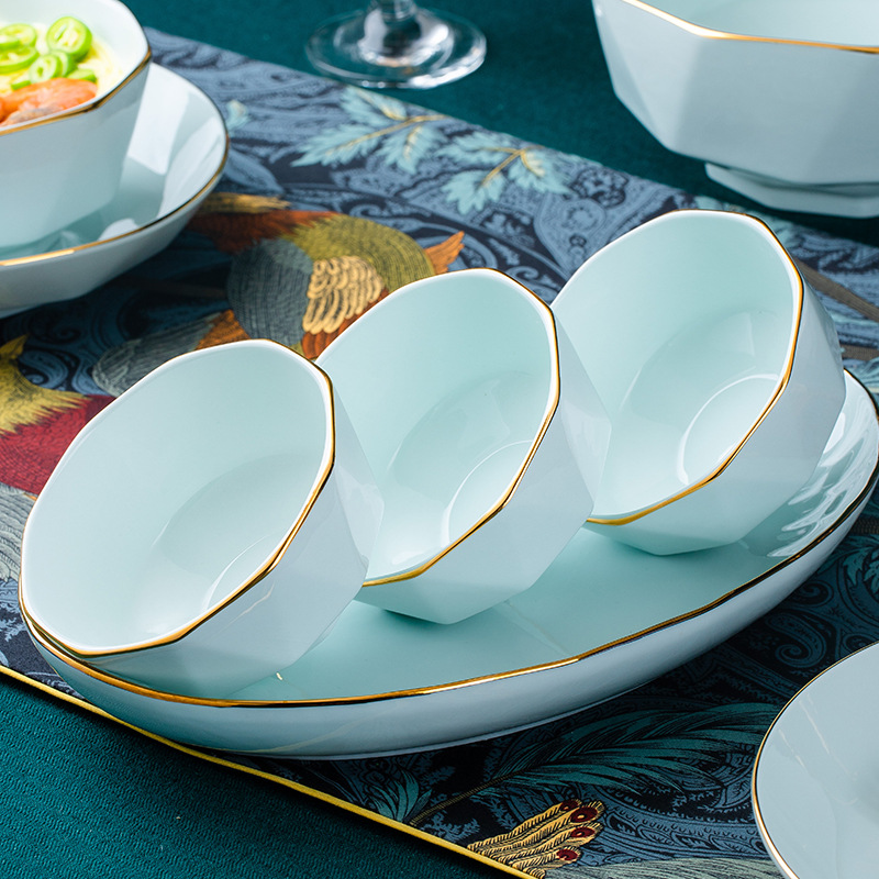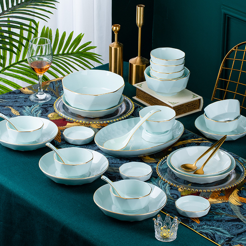 Dishes set high-grade ceramic tableware Yingqing rice bowl noodle bowl large soup bowl light luxury hand-painted gold diamond bowl gift