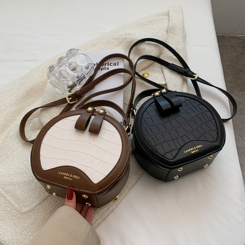 2022 new style stone pattern messenger bag fashionable Western style portable small round bag