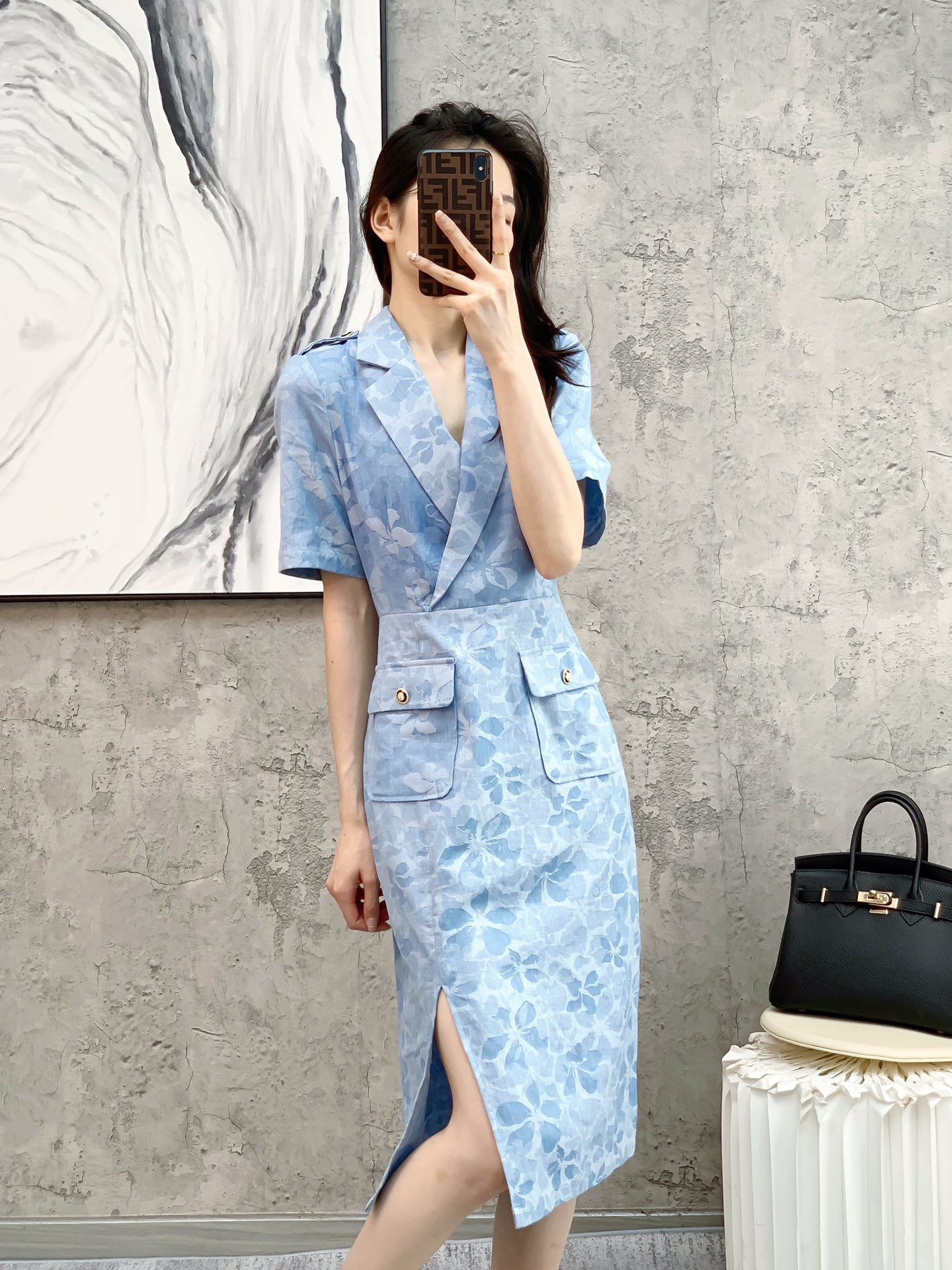 Famous Yuanfan temperament g family 2022 early spring new product famous Yuanfeng lapel dress is not