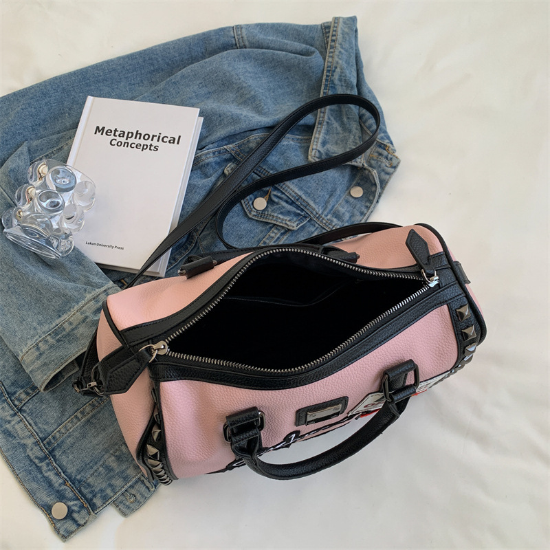 New Fashion Motorcycle Shoulder Boston Bag Rivet Large Capacity Messenger Bag