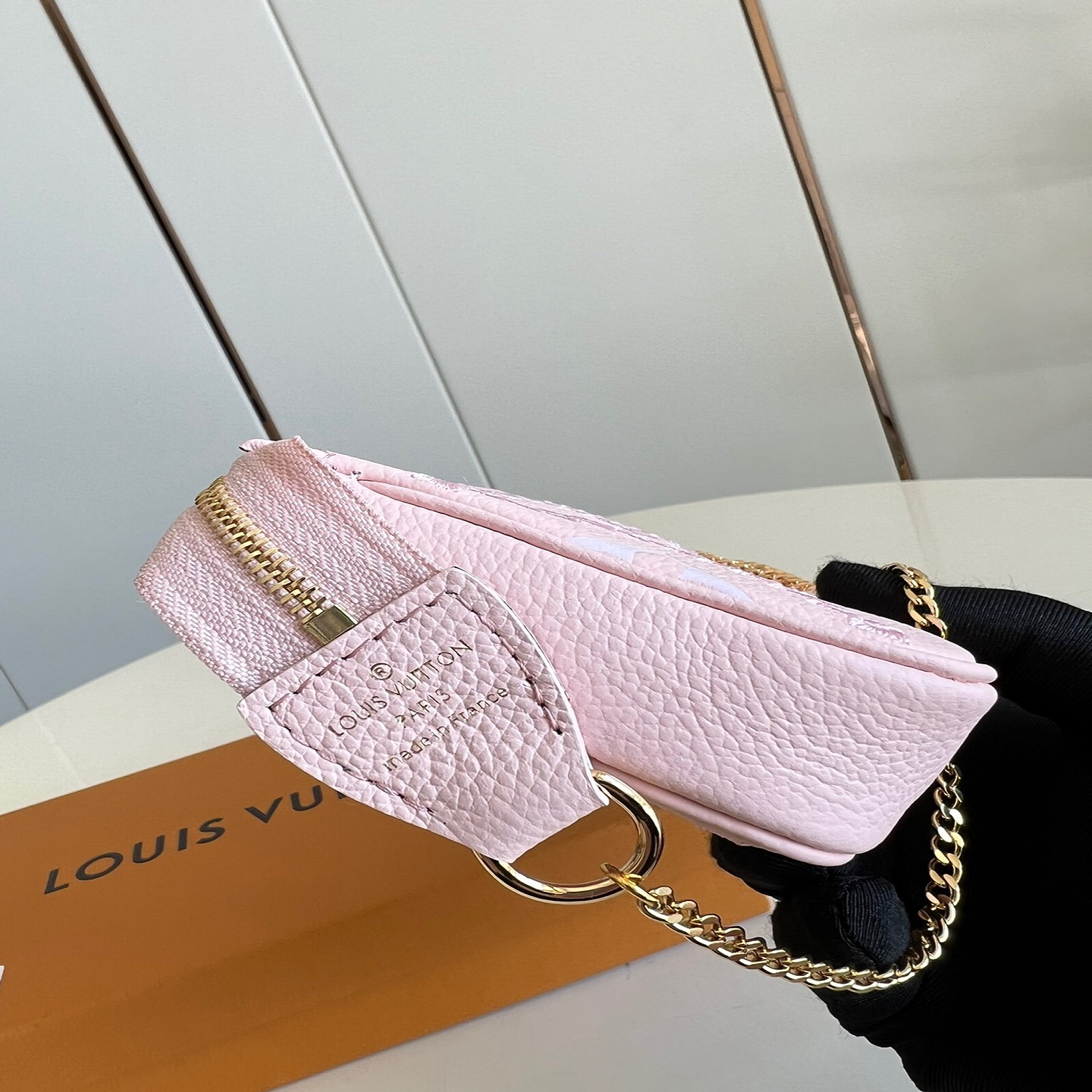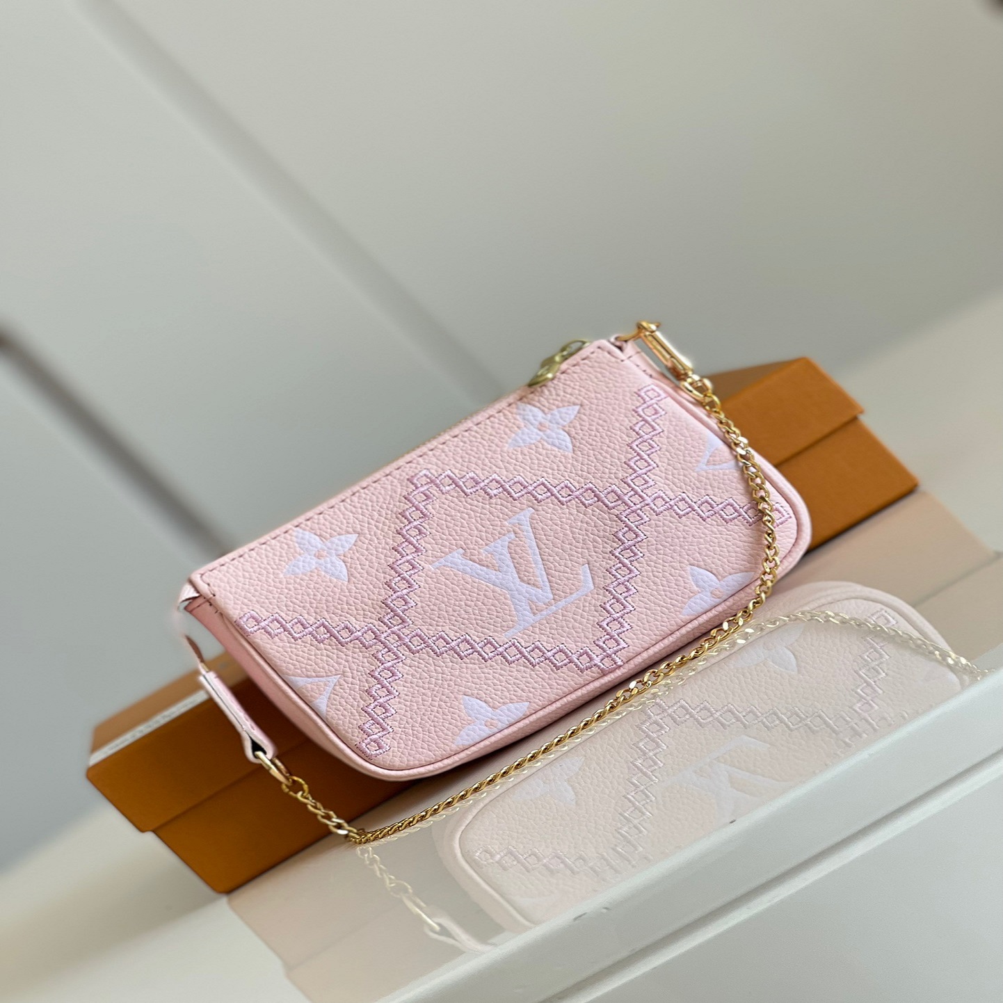 Mini chette accessoires handbag is added to the monogram emeinte broderies series to embroider diamond stitches for monogram embossed cowhide leather, tracing back to the quilted interior design of classic hard boxes.