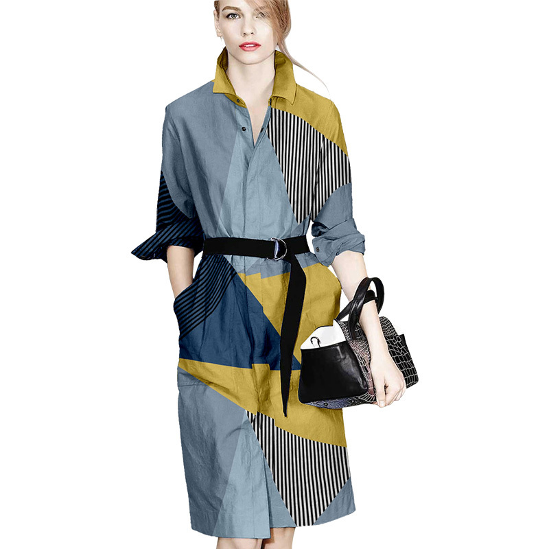 New Amazon Spring/Summer Printed Short Sleeve Pocket Dress European and American Foreign Trade Loose Mid-length Dress