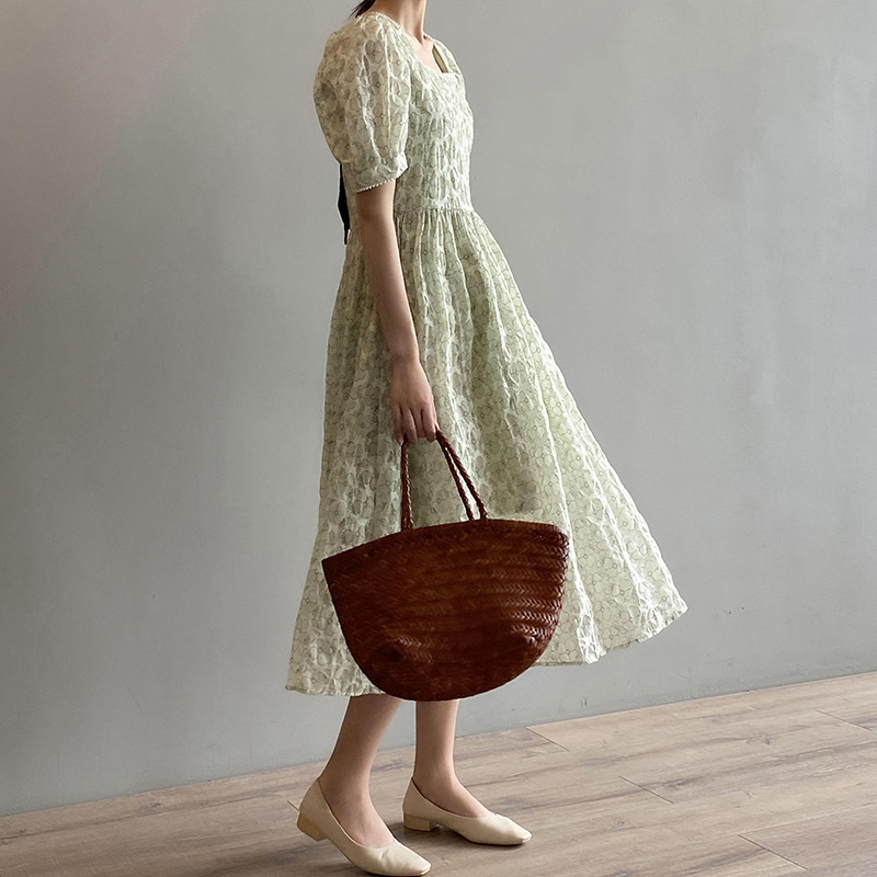 Fat girl chiffon floral dress plus size women's summer dress new bubble sleeves age-reducing foreign style