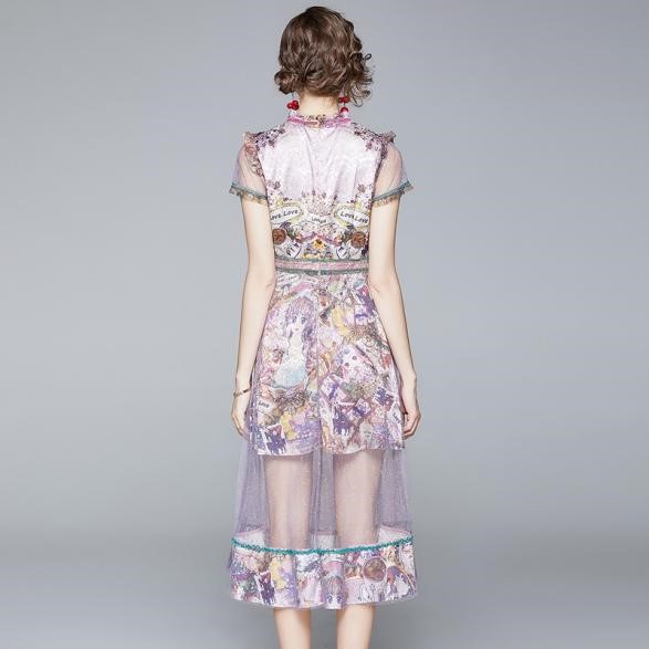 2022 Summer New High-end printed mesh short-sleeved dress