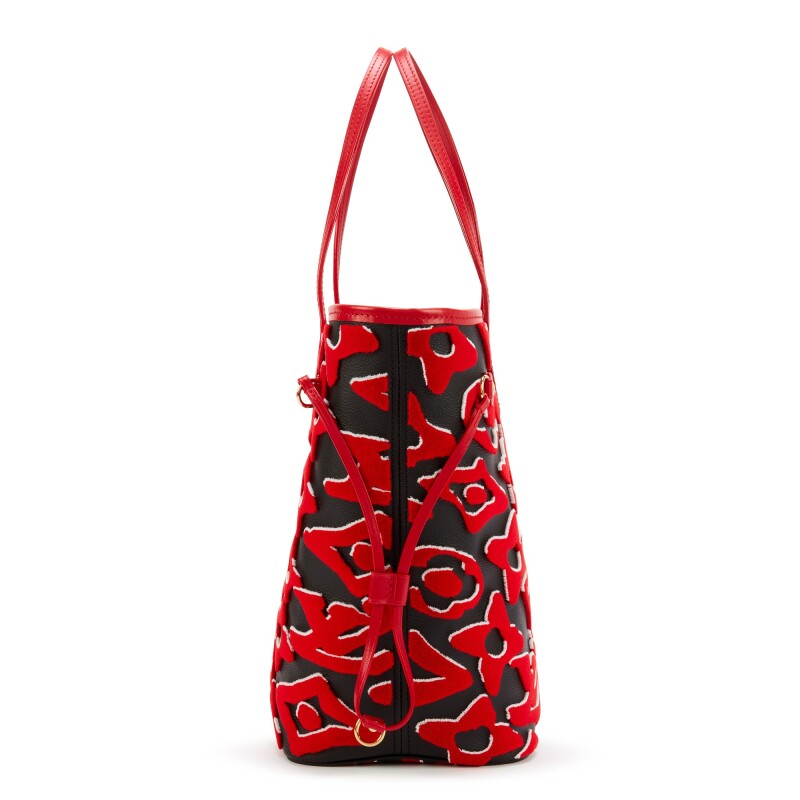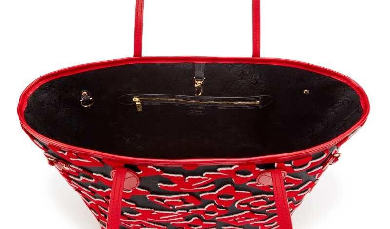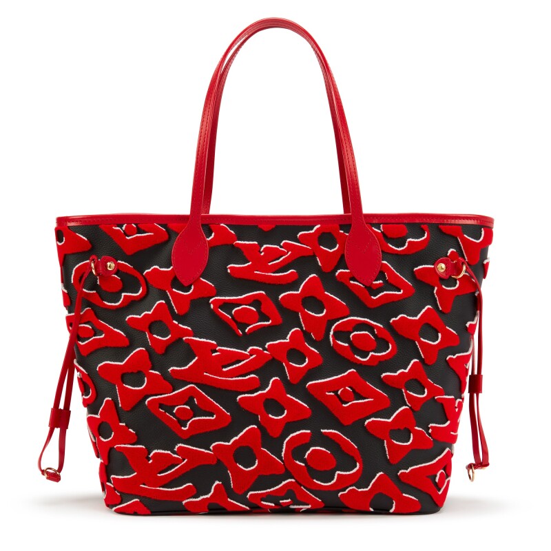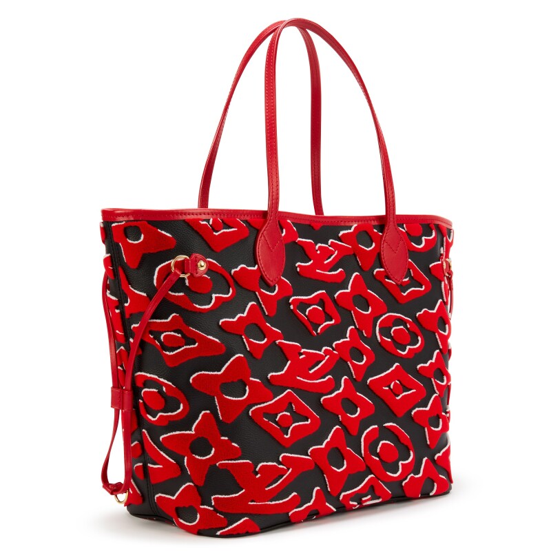 Red, white and black tufted Monogram canvas LVxUF Neverfull MM gold hardware, 2020