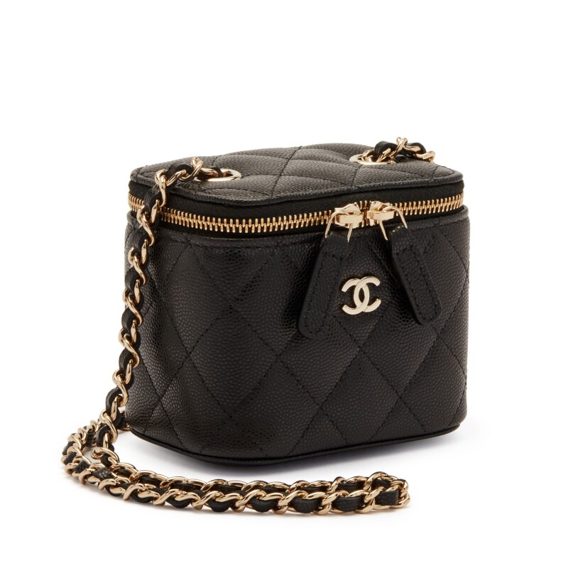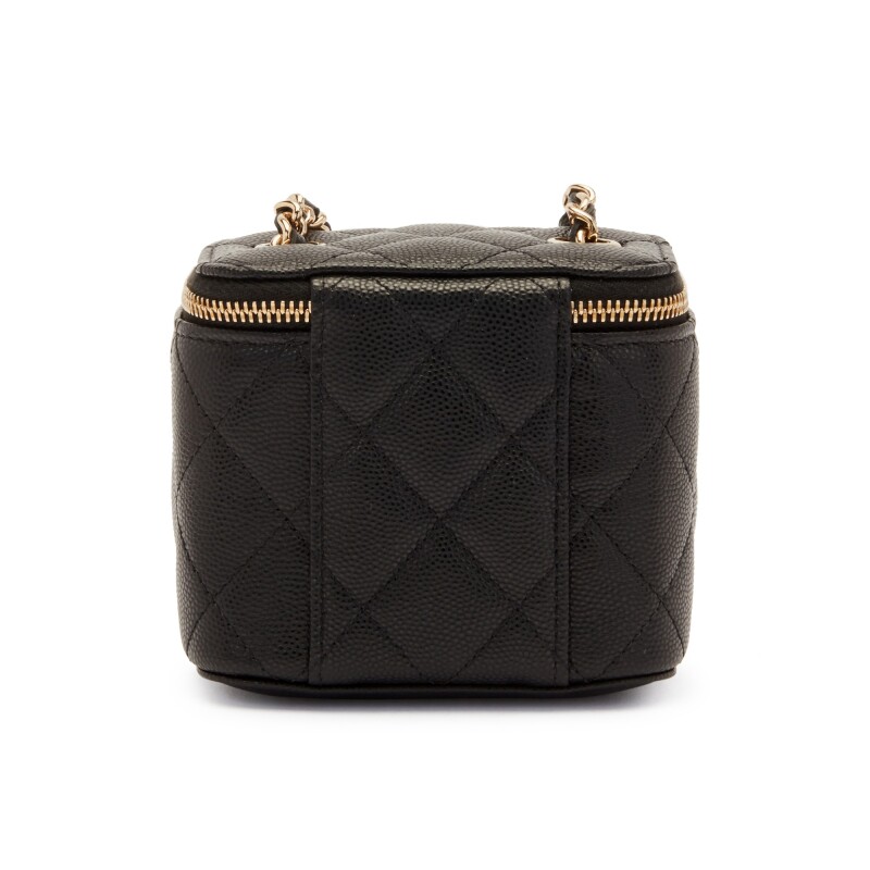 Black Quilted Grained Calfskin Mini Vanity with Chain Gold Hardware, 2021