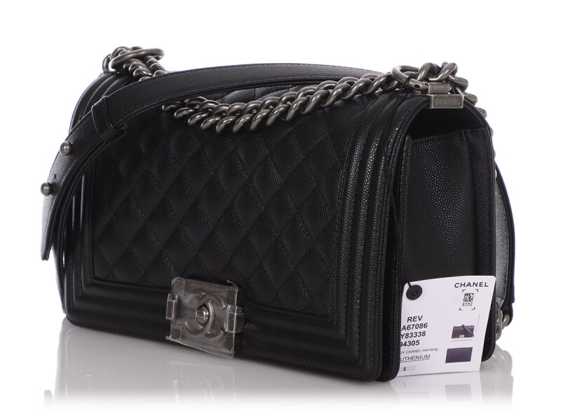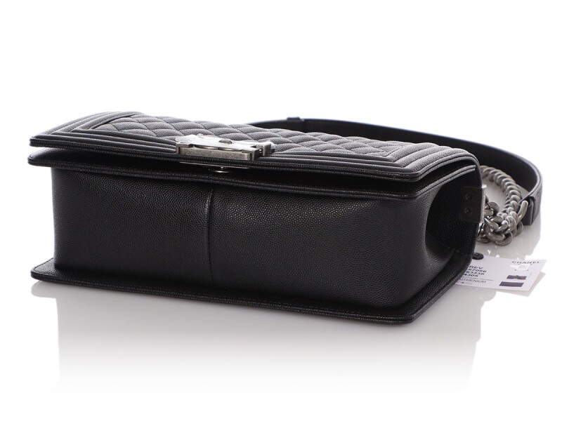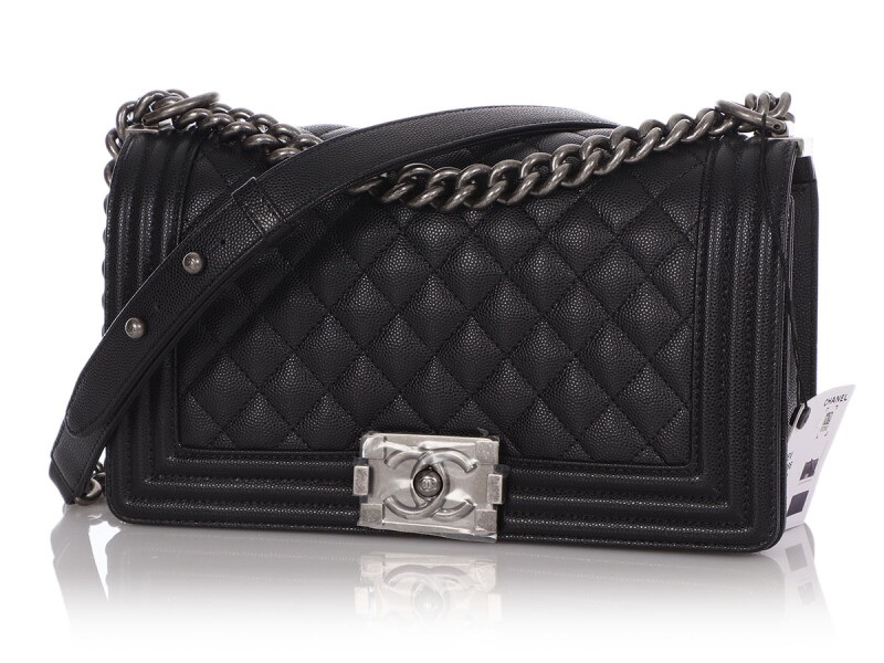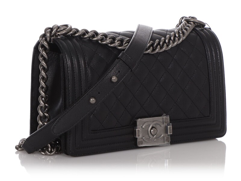 Black Grained Calfskin Old Medium Boy Bag Silver Hardware, 2022