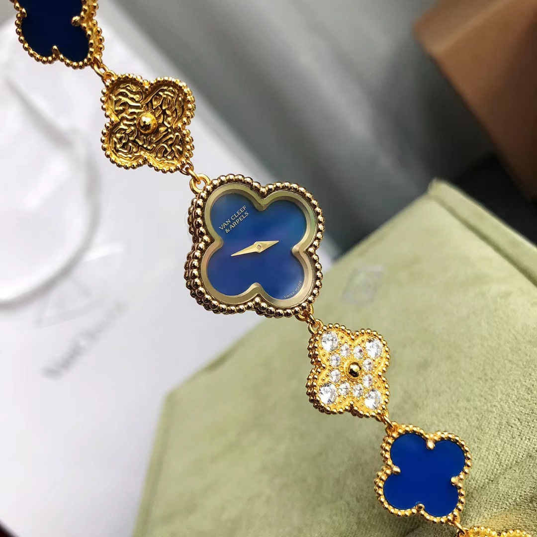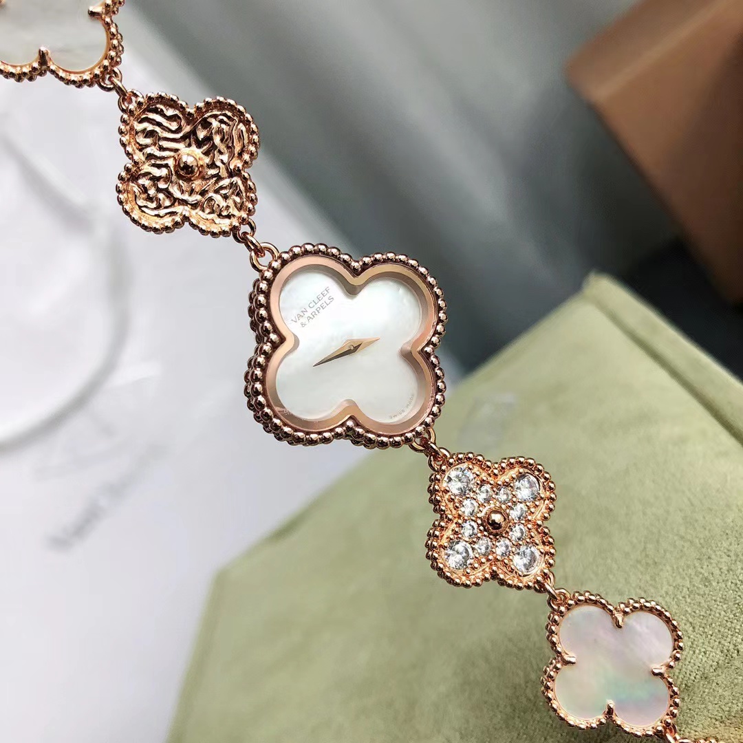 Reinterpreting the four-leaf clover like the amulet, this is the latest mini dial from the counter. 22.7mmx 22.7mm has a choice of gold, rose gold and white gold. The dial is super exquisite.