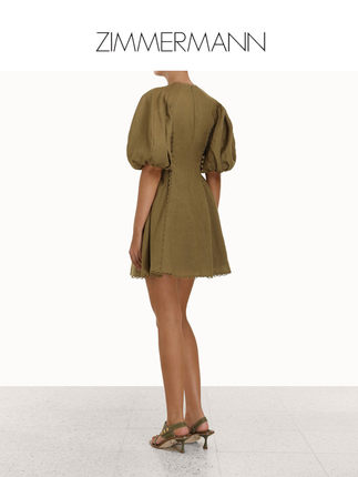 材质:麻 尺码:0P 130 2 颜色分类:橄榄绿 袖型:泡泡袖 货号:2980DROSOLV 成分含量:95%以上 季节:2022 春袖长:五分袖 裙长:短裙 材质成分:亚麻100%