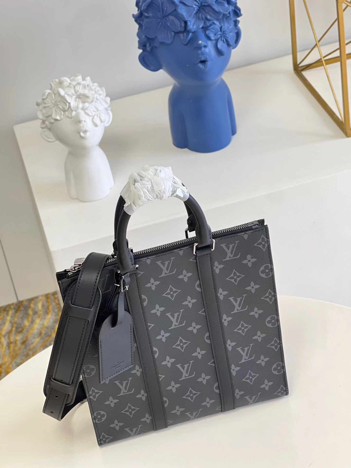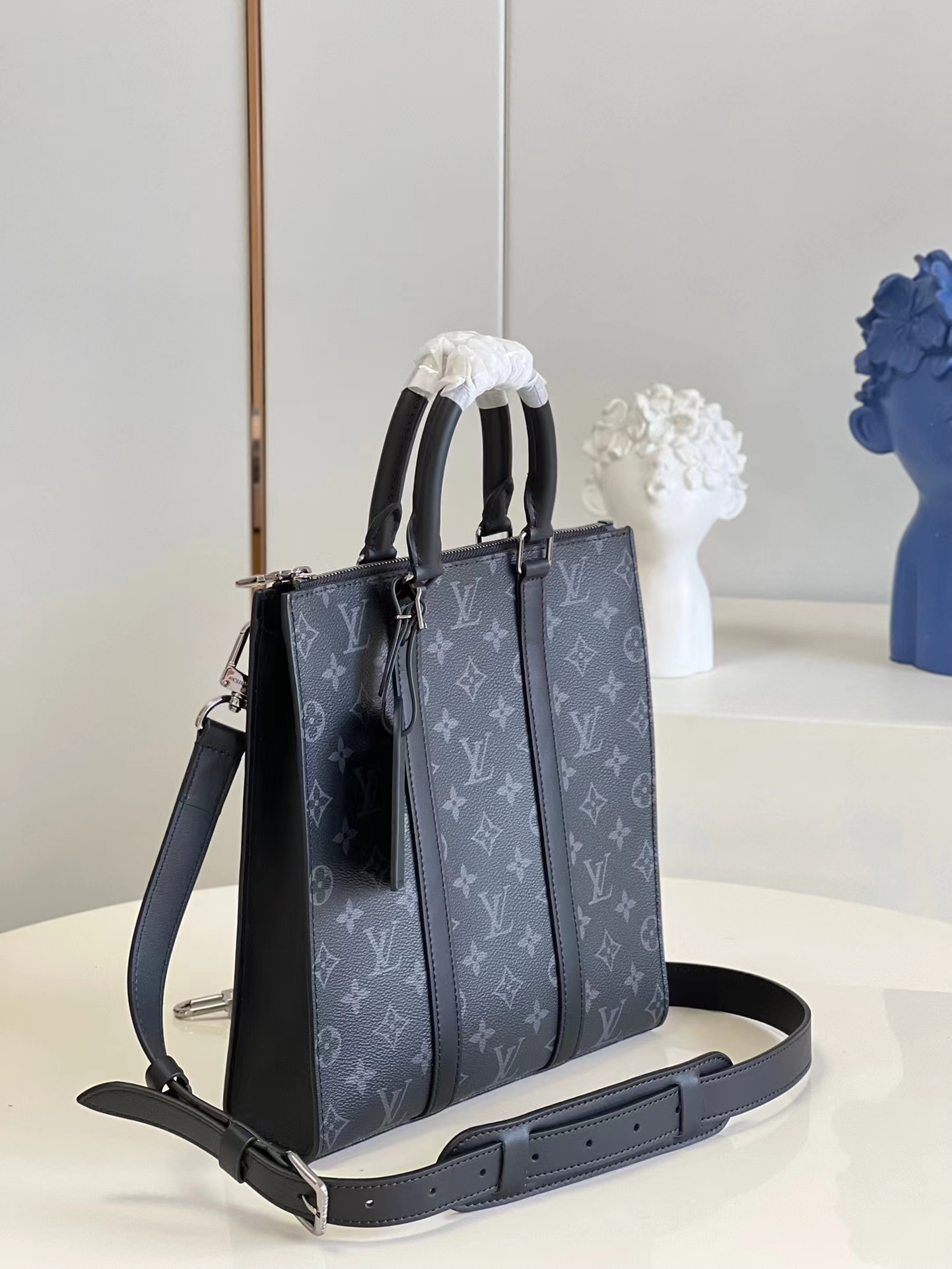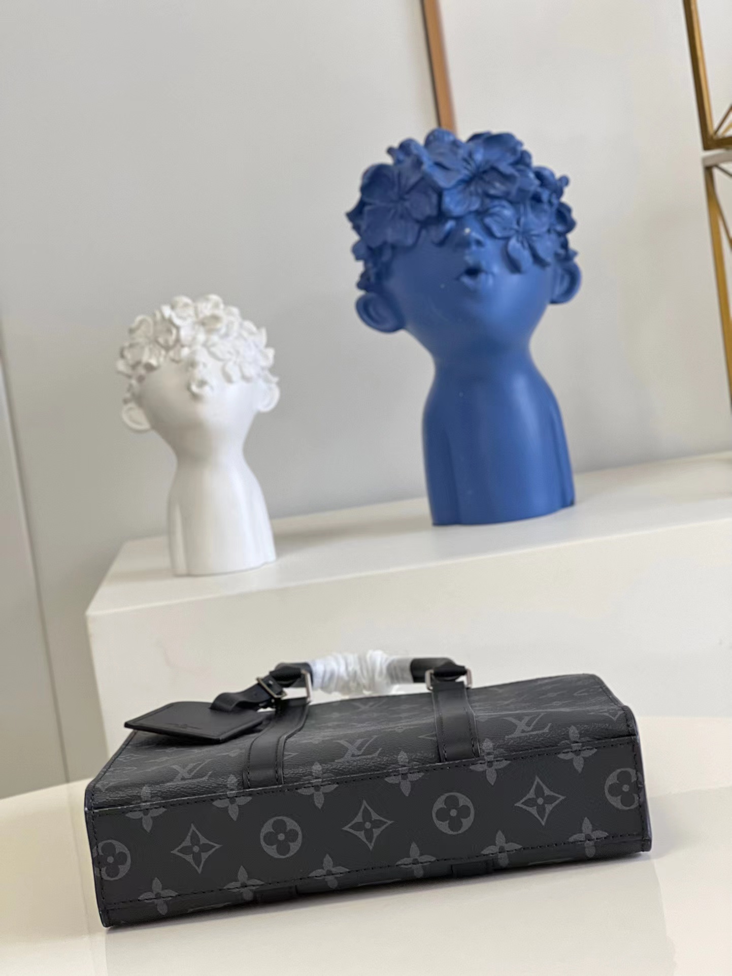 This handbag draws inspiration from the Louis Vuitton collection of Sac Plat handbags and uses Monogram Eclipse Reserve canvas to create an elegant configuration.