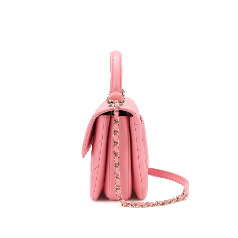 Pink Quilted Lambskin Small Trendy CC Top Handle Flap Bag Gold Hardware, 2020