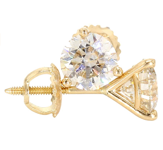 IGI Certified Lab-Created Diamond Stud Earrings Martini Prong 14k Yellow Gold Womens (VS2-SI1 Clarit