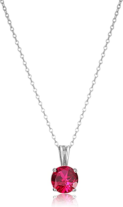 Amazon Essentials Genuine or Round Cut Birthstone Pendant Necklace in Sterling Silver, 45.72 cm