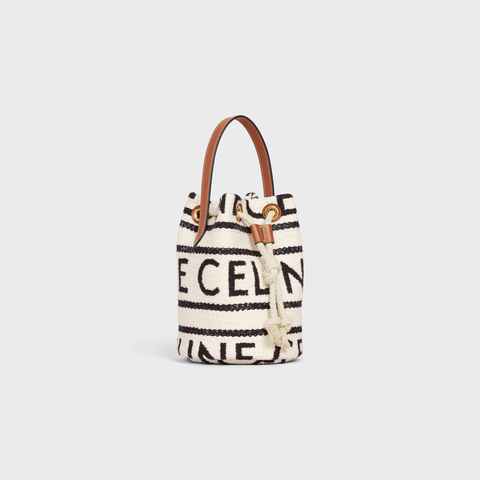 CELINE full-width printed fabric and calf leather TEEN rope handbag