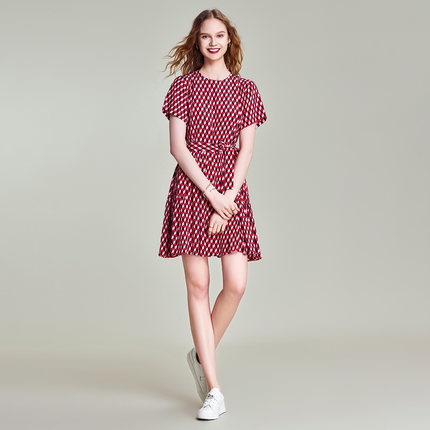 top1 new dress women's summer temperament slimming design a-line chiffon floral skirt