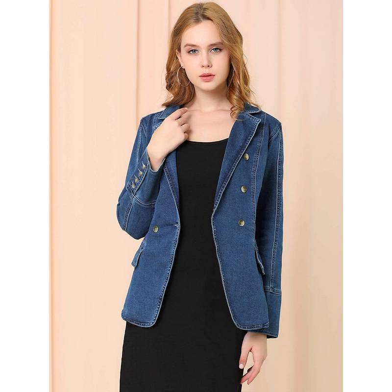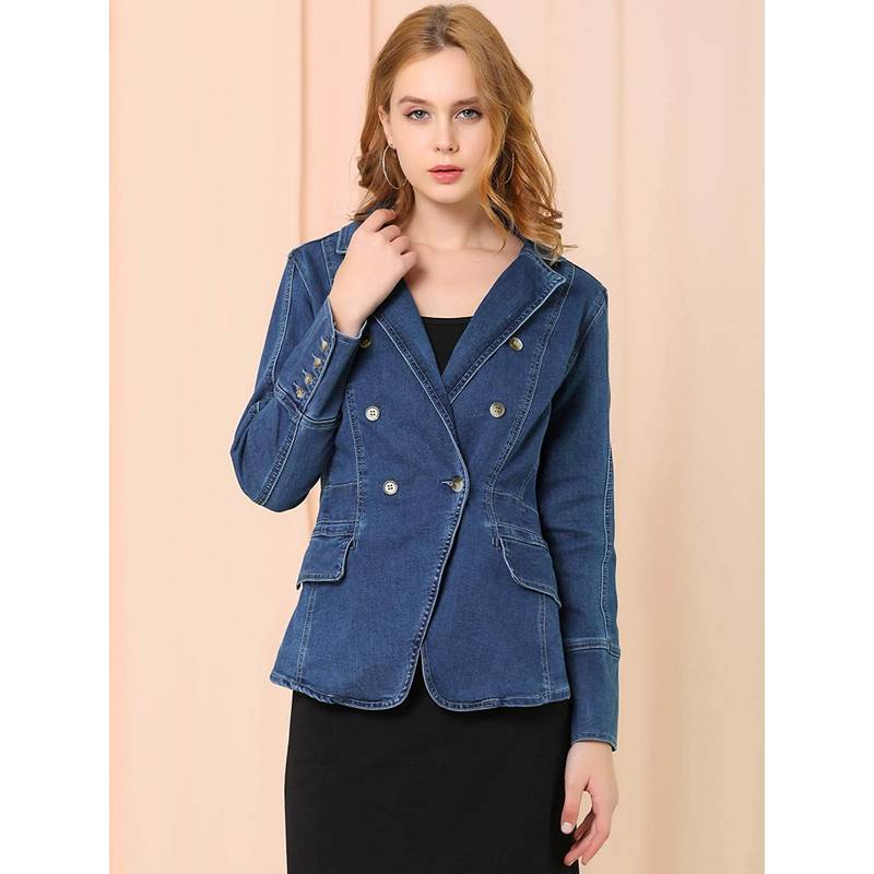top6 Women's denim jacket lapel long sleeve office denim jacket with pocket