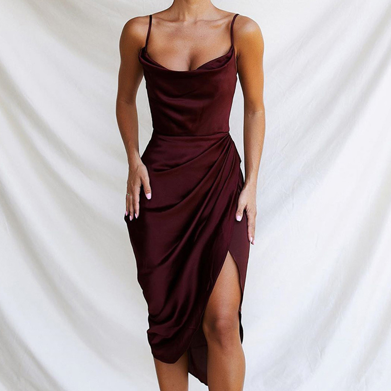 European and American sexy slender temperament high slit strap dress female drape waist small dress skirt