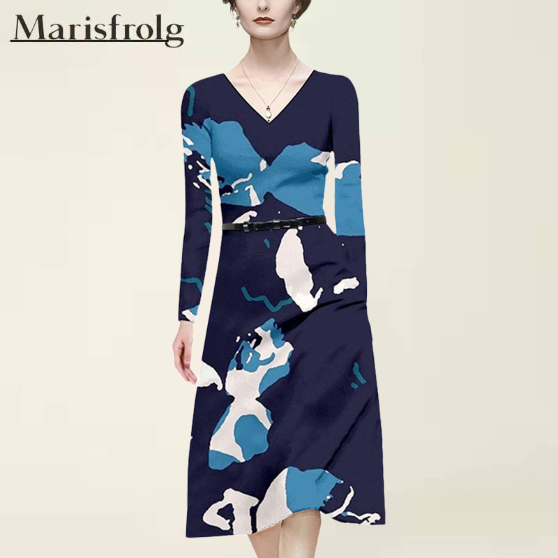 Marsfield genuine domestic purchasing spring and summer 2022 new European and American French print slim temperament dress