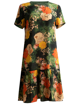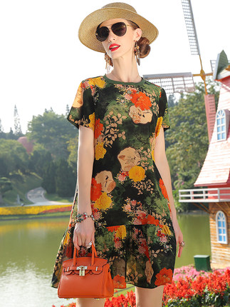 Loose silk dress 2022 new summer high-end big-name floral skirt mulberry silk large size European and American skirtn