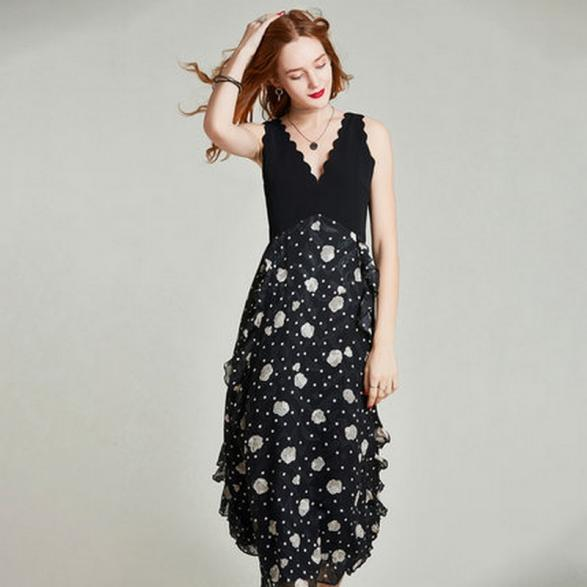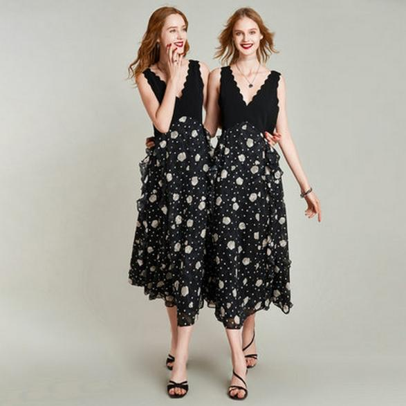 2022 new floral dress women's summer temperament v-neck design French skirt