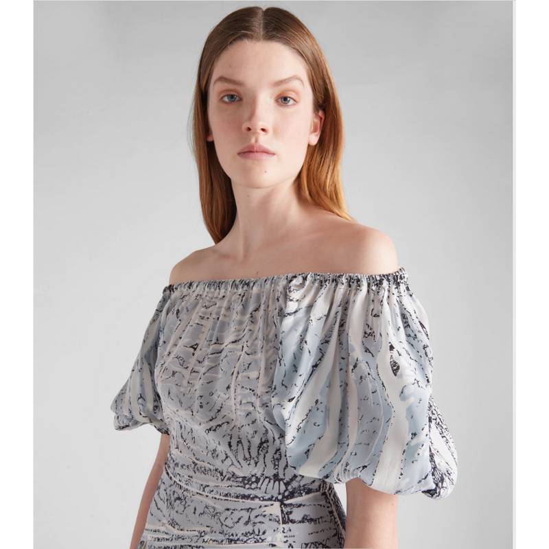 printed crepe de chine dress