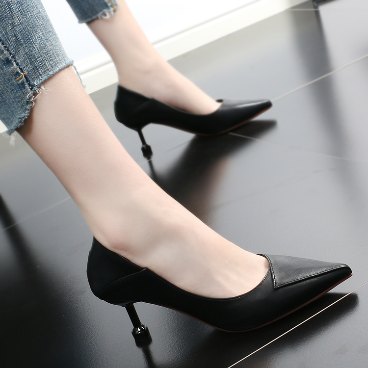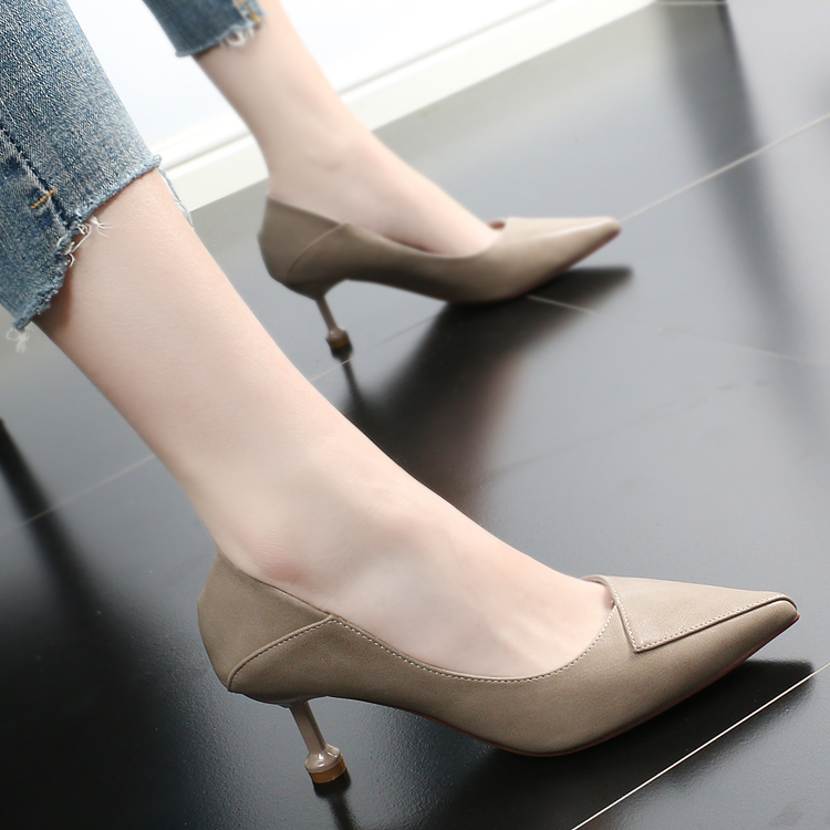 Closing mode: Foot size: 34 35 36 37 38 39 Pattern: solid color style: European and American popular elements: shallow heel height: high heel (5-8cm) Color classification: gray black turmeric Marketing year Season: 2018 Winter toe style: pointy applicable scenario: daily heel sole style: Thin heel sole material: rubber inner material: PU Applicable object: young people (18-40 years old) Opening depth: shallow mouth leather features: trim shoes Production process: adhesive shoes insole material: PU style: single upper material: PU