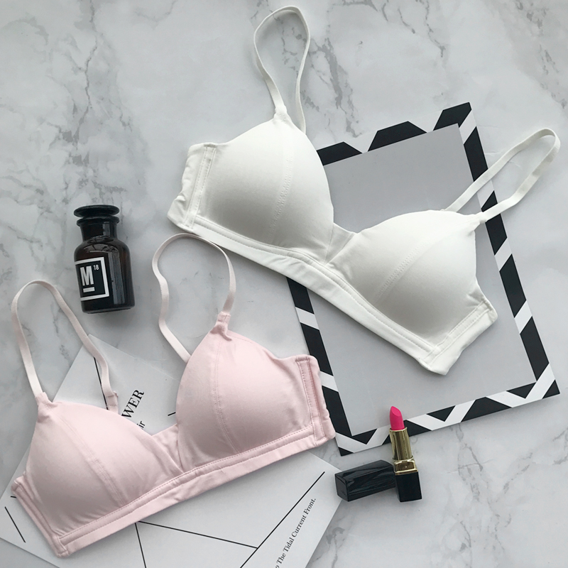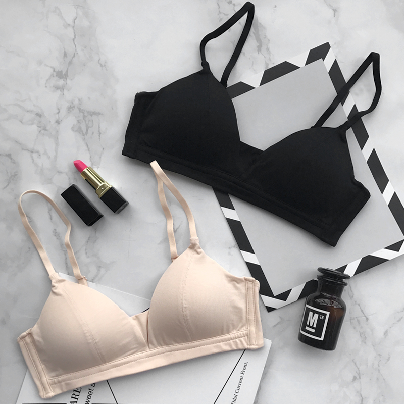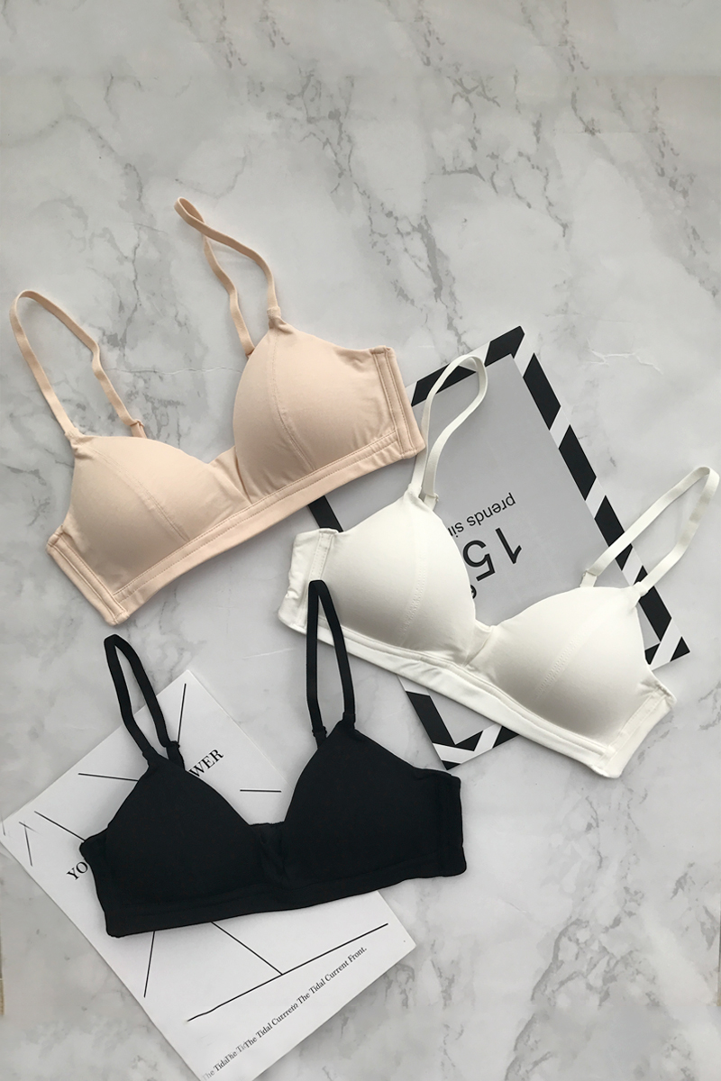 Features: Traceless pattern: solid color Bra style: Simple color classification: yellow light blue black skin color pink off-white vintage red fruit green Cup Fabric: cotton cup Thickness: Thin cotton cup insert: cotton cushion fabric Commonly known as modal fabric With or without steel rim: Mouldless cup Fabric: Polyester fiber flanking Fabric: cotton Flanking Lining: Cotton applicable season: autumn cup style: triangle cup Cup lining: cotton clothing style details: one-piece shoulder strap style: fixed and disassembled shoulder strap Applicable object: young women bra style: triangle cup (bikini) Cup lining content: 81%(inclusive)-95%(inclusive) size: S (suitable for 70ABC) M (suitable for 75ABC) L (suitable for 80ABC) XL (suitable for 85ABC) Buckle row: rear double row buckle
