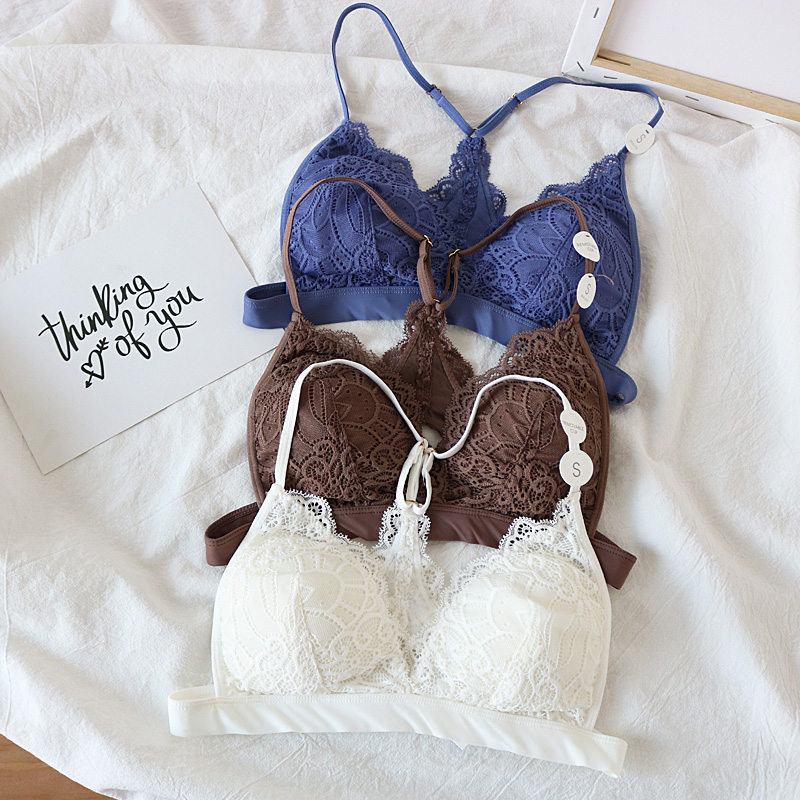 European and American French lace thin multi-color inserts women's underwear triangle soft cup sexy bra without underwire