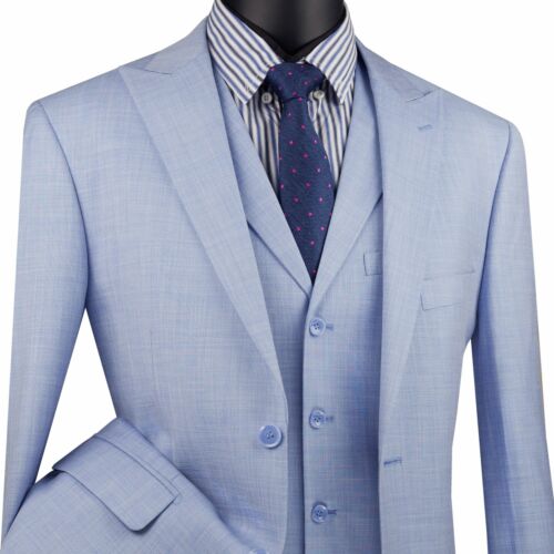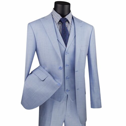 VINCI Men's Light Blue Textured Weave 2 Button 3 Piece Modern Fit Suit NEW