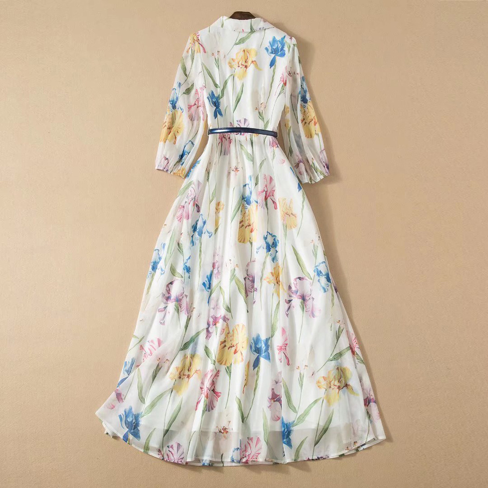 European station spring dress is thin skirt 2022 new female European and American big brand fashion temperament large swing printed skirt