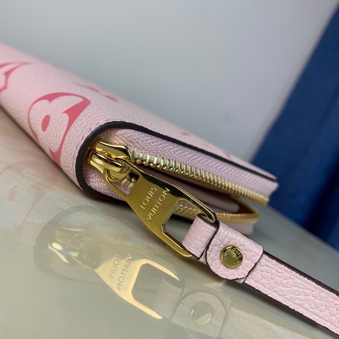 Zippy change wallet from the summer 2021 by the pool accessories, leather goods and clothing series, for monogram empreinte leather imprint monogram pattern, interpretation of color gradient.