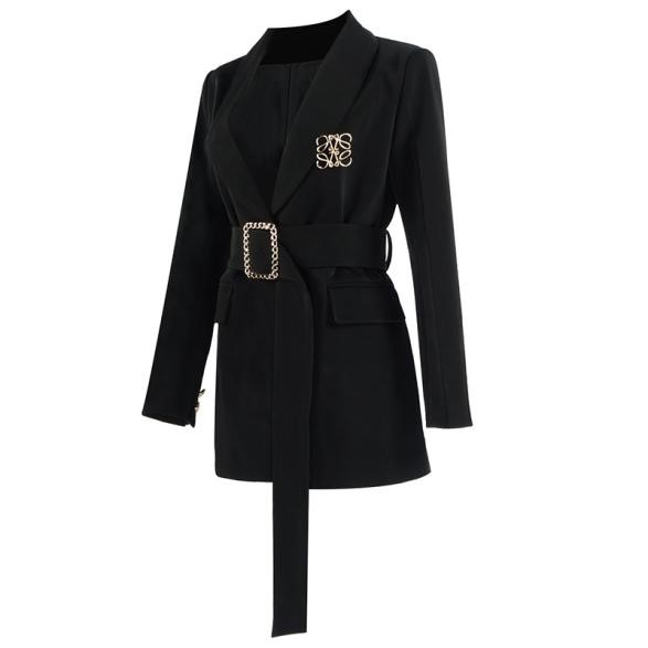 Retro Net Red temperament waist and thin lace small suit long-sleeved mid-length slim dress suit jacket