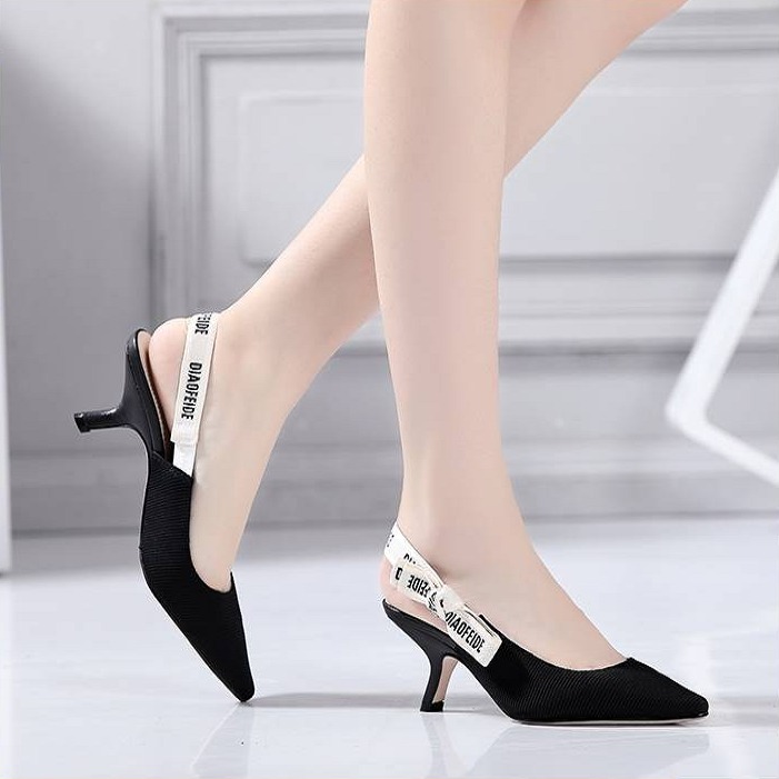 Stylish Women's Black Shoes with Heels and White Strip