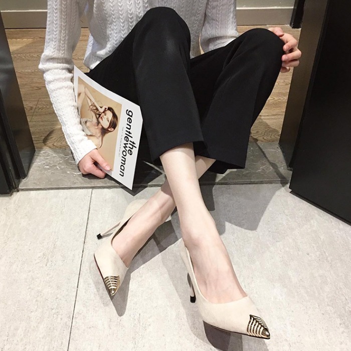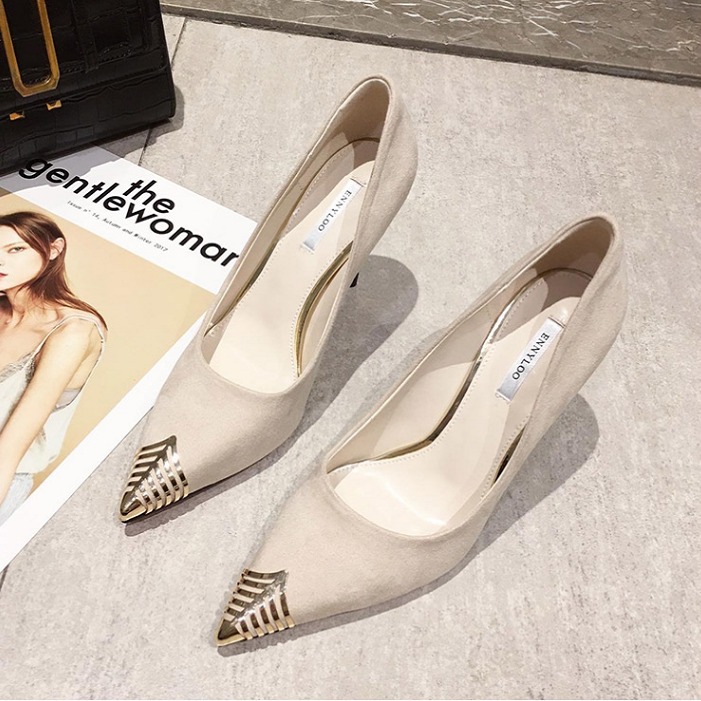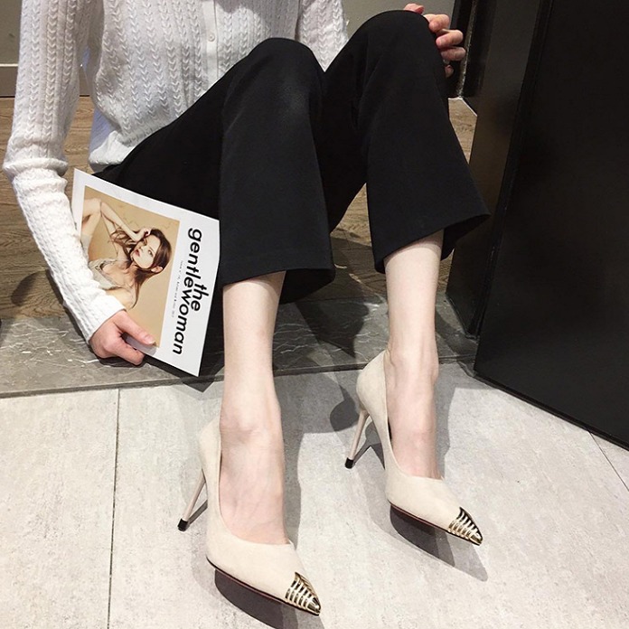 Classy White Suede High Heels with Golden Tip