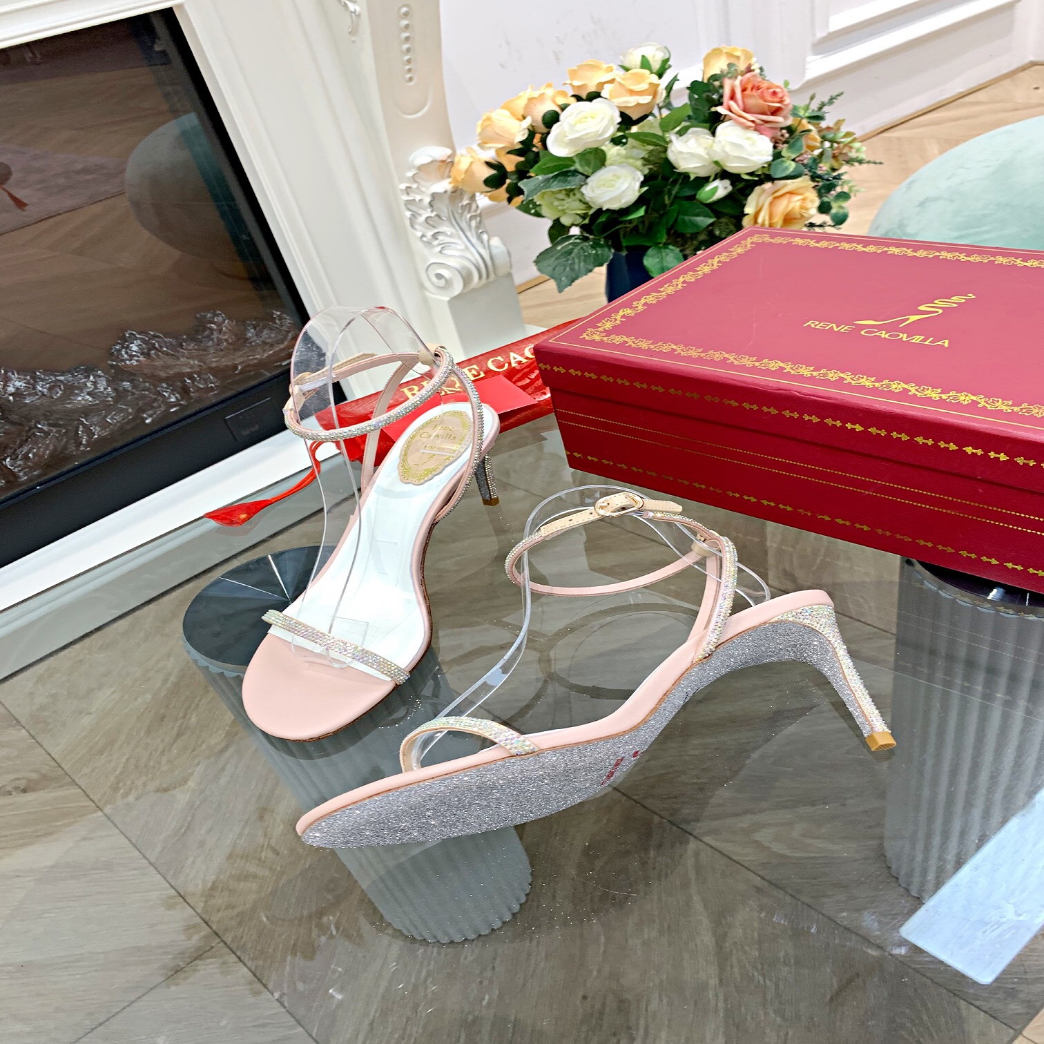 Luxury Italian Jeweled Shoes by René Caovilla Signature Women's Open Toed Sandals with Ankle Strap and The Silver Star-Dusted Soles