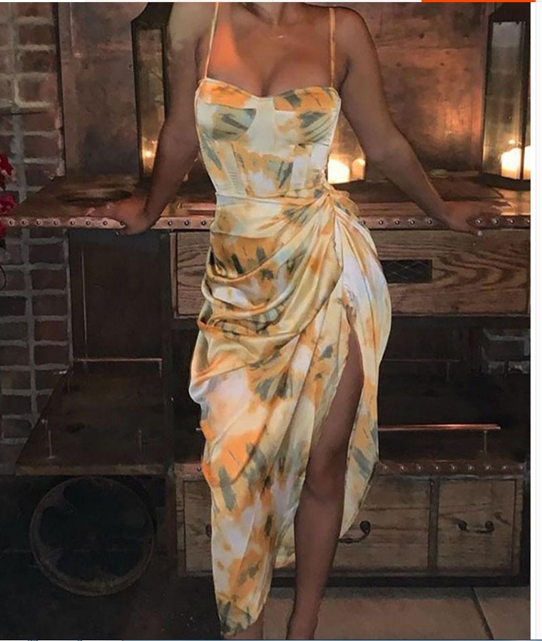 Europe and the United States fashion women's INS net red style temperament printing strap dress dress irregular dress holiday dress