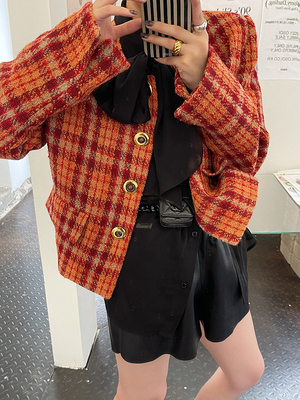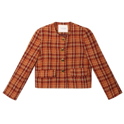 ACSENSE Orange weave check 80 wool short coat 2022 spring and Autumn new little coat