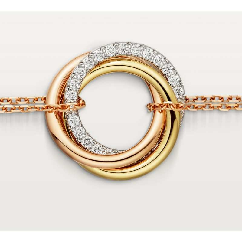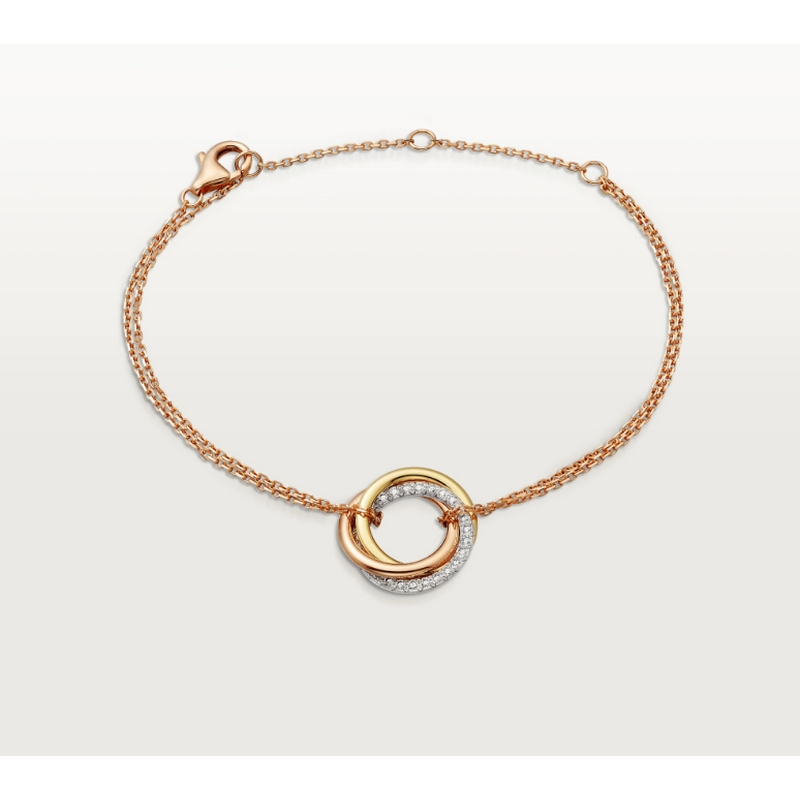 Trinity Bracelet, Classic, Platinum 750/1000, Gold 750/1000, Rose Gold 750/1000, Set with 27 diamonds, Total weight 0.17 carats (No.17)