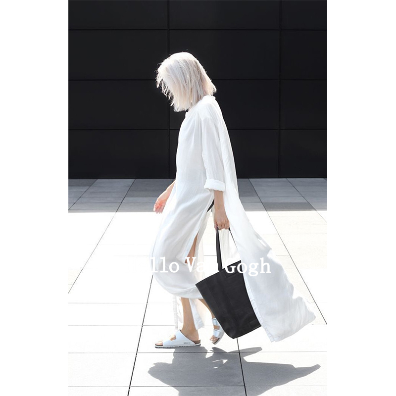 Self-made gas field simple European and American shirt dress super long loose large size shirt skirt xia Xin female
