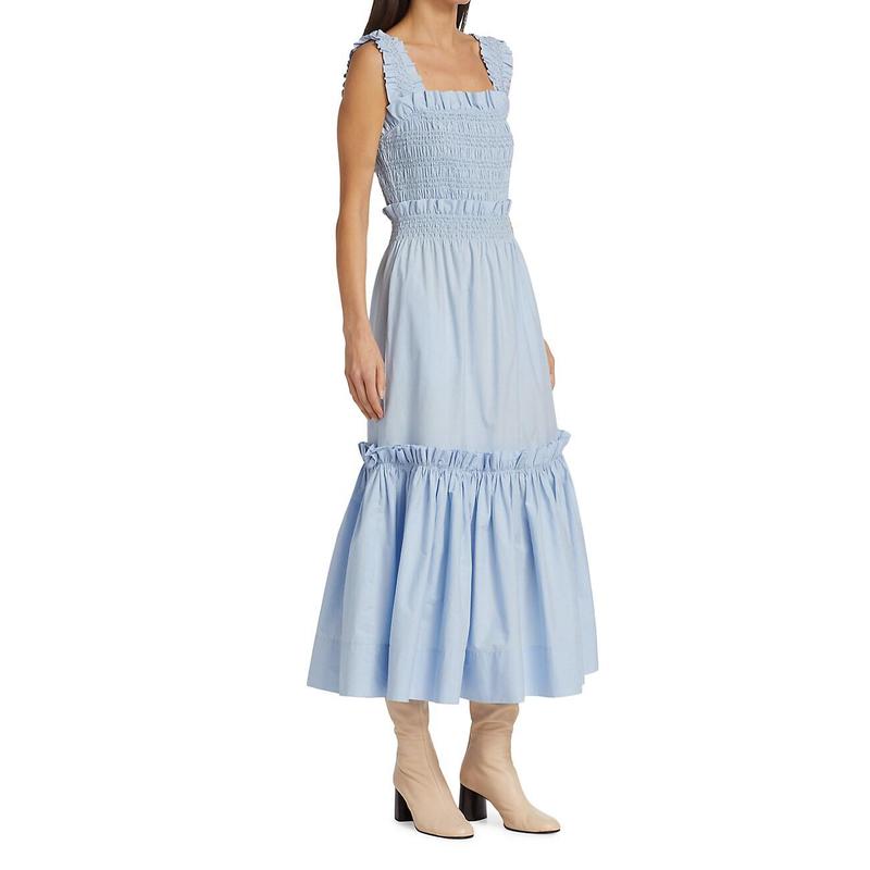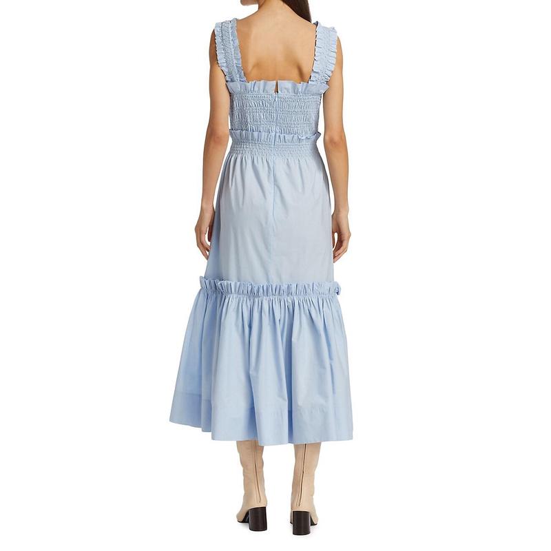 Applicable age: 18-24 years old size: 145/80A XXS 150/80A XS 155/80A Collar type: V collar waist type: mid-waist Color classification: BLUE Combination form: single skirt type: pleated skirt applicable season: Summer Year season: 2022 Summer Sleeve length: Short sleeve skirt length: MIDI skirt