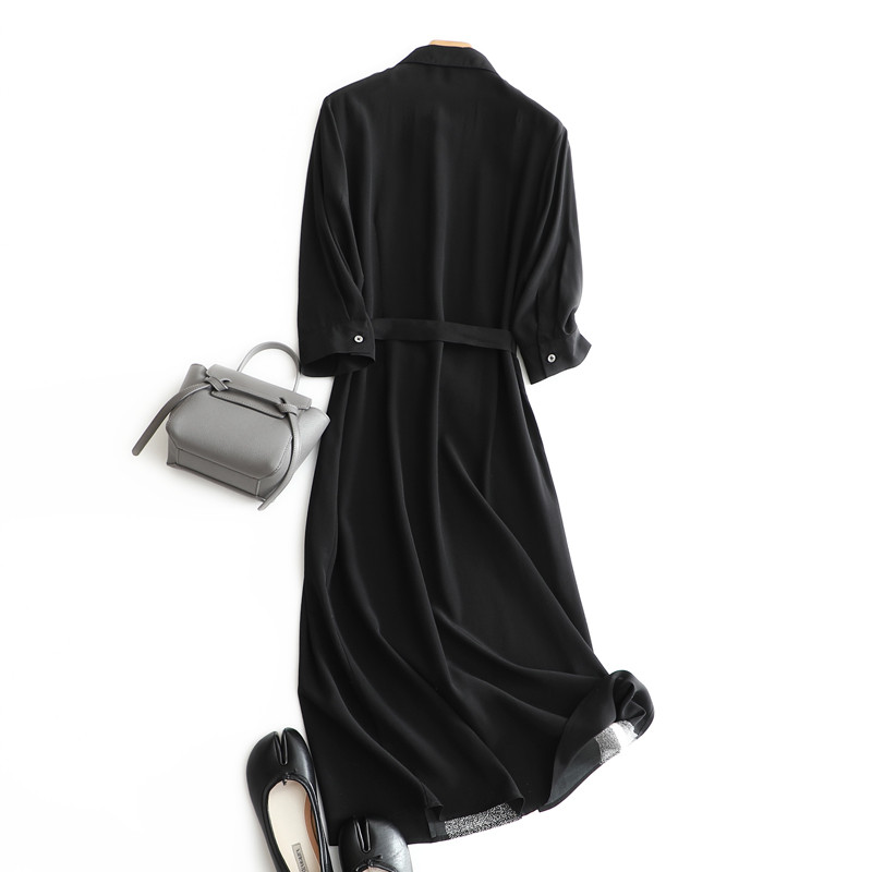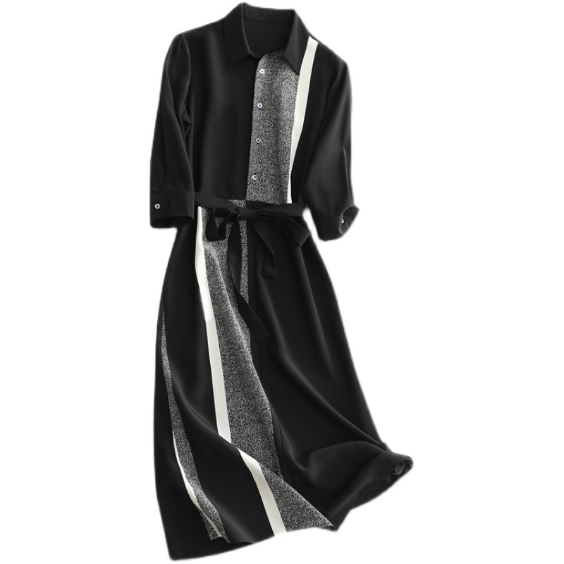 Suitable age: 30-34 years old Material: Silk size: M L XL 2XL 3XL Fabric: Crepe de chine silk pattern: Other /other style: Street collar: POLO collar waist: middle waist front: single breasted color classification: black sleeve type: Conventional combination form: Item No. : FR963113 Component Content: 95% + Skirt Type: A-line skirt Season: Summer Year Season: Summer 2021 Sleeve Length: Quarter sleeve Length: MIDI Skirt Popular Elements/Craft: Lace stitching print Style: Other /other Profile: A-line