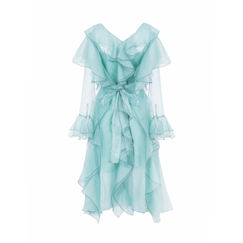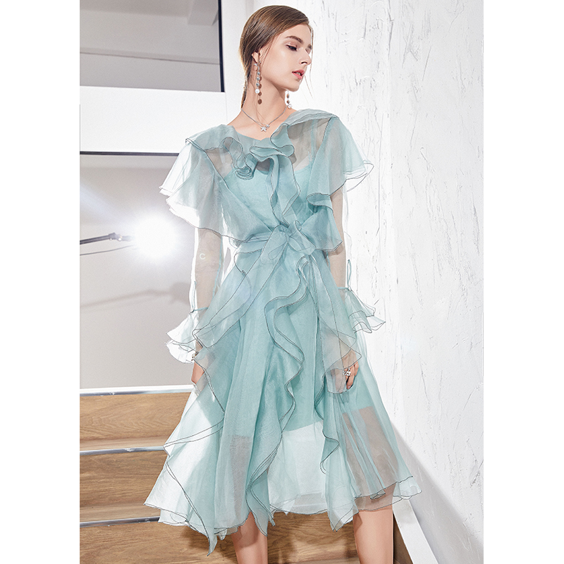 American romantic pea green organza flounces elegant design of silk dress