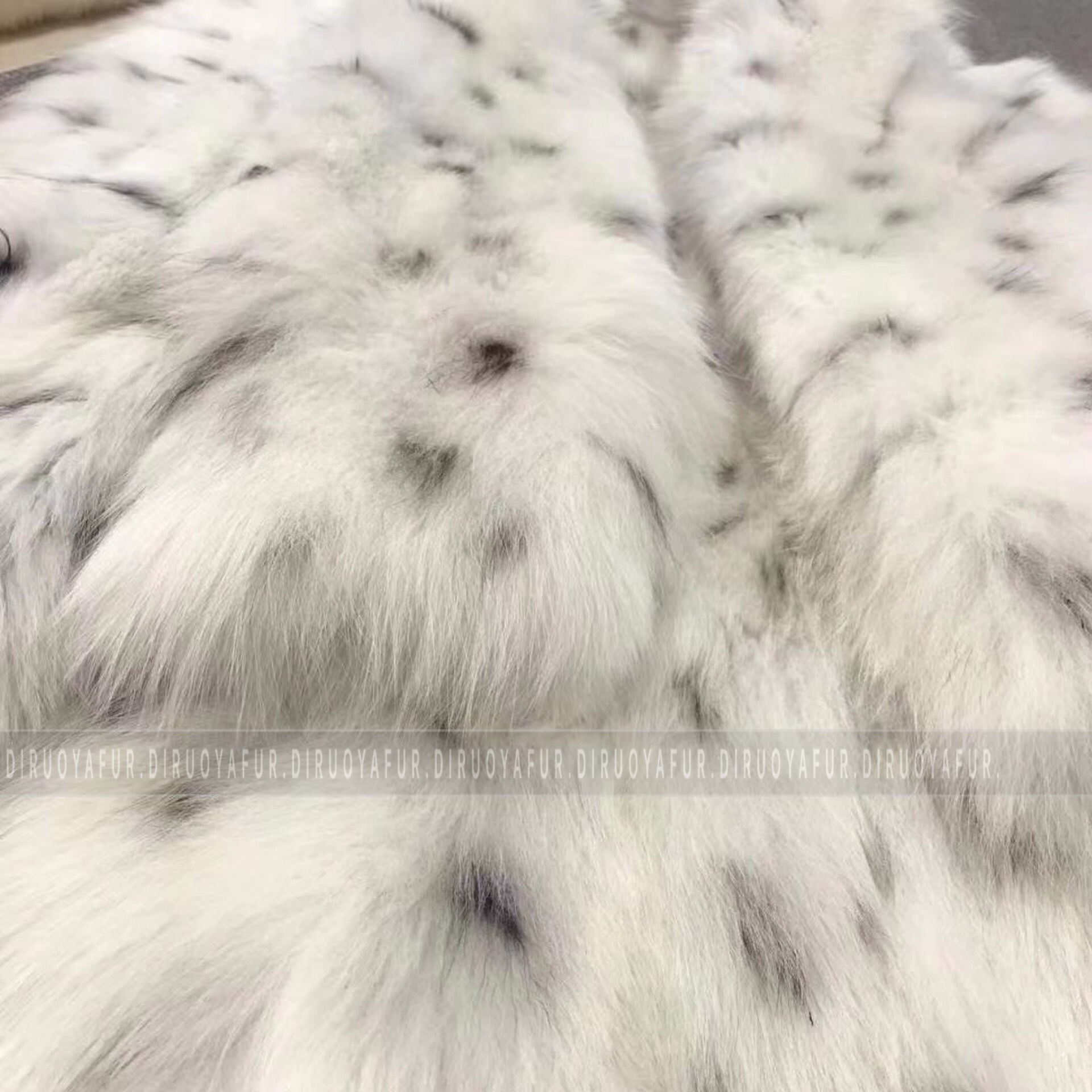 2022 European and American catwalk show imported fox white belly fur lapel leopard print bobcat medium long coat fur coat female