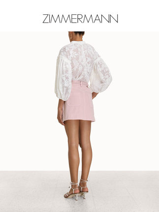 Zimmermann Tropicana stand-up collar, off-shoulder, lantern sleeve shirt