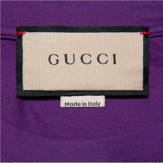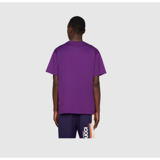 Purple knitted cotton with yellow "Blueberry Gucci" print